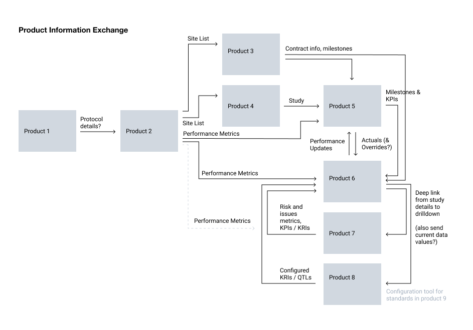 When working in a platform environment, no product is ever building alone. To create multi-product workflows and end-to-end experiences, we also need to map out which product is responsible for which tasks, how information is exchanged within the system (this can be either visible or invisible to the user), work through dependencies, and stage out development at both a function and roadmap level. These large-scale initiatives tend to move slowly, and often require several years of discussion and collaboration to actually build the arrows that connect the boxes.